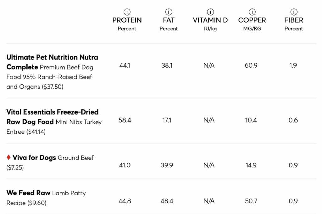 The table below shows the results of the CR tests for proteins, fats, vitamin D and copper. The foods that did not respect the AAFCO nutritional guidelines were marked with a red X. The results for fiber have been included, although there is no recommended level for this nourishing, although listed on dog food labels. The foods were tested for vitamin D only if this nutrient was indicated on the label; Otherwise, the column of vitamin D reports “N/A” (not applicable).
