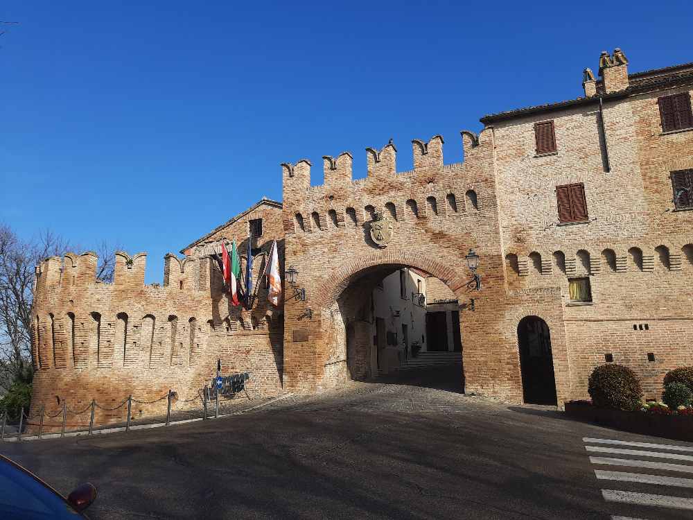 Walking along the city walls, you can see the continuity of the fourteenth and fifteenth century fortifications, among the best preserved in the region. The historic gates – Santa Maria del Mercato, San Giovanni and Porta Nova – mark the accesses to the village, while the towers and walkways tell of the defensive organization of Corinaldo. From above, the view opens onto the countryside cultivated with vineyards and olive groves, from which identifying products such as Verdicchio dei Castelli di Jesi and local extra virgin olive oil are born.
