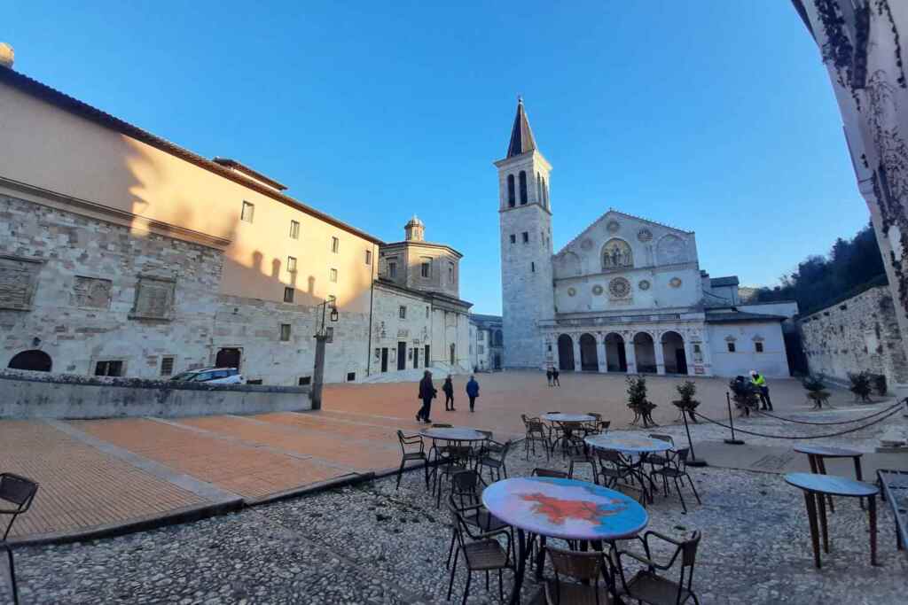 Continuing on foot you reach one of the most recognizable places for fans of the series: the Basilica of Sant’Eufemia, the real church of Don Matteo. It is hidden inside the Archbishop’s Palace, built on the ancient Lombard structures. Here fiction has found an authentic environment, far from artificial reconstructions. Entering the courtyard is like stepping back in time. The church, simple and Romanesque, tells of a less flashy Spoleto but profoundly consistent with the spirit of the series: discreet, human, everyday.