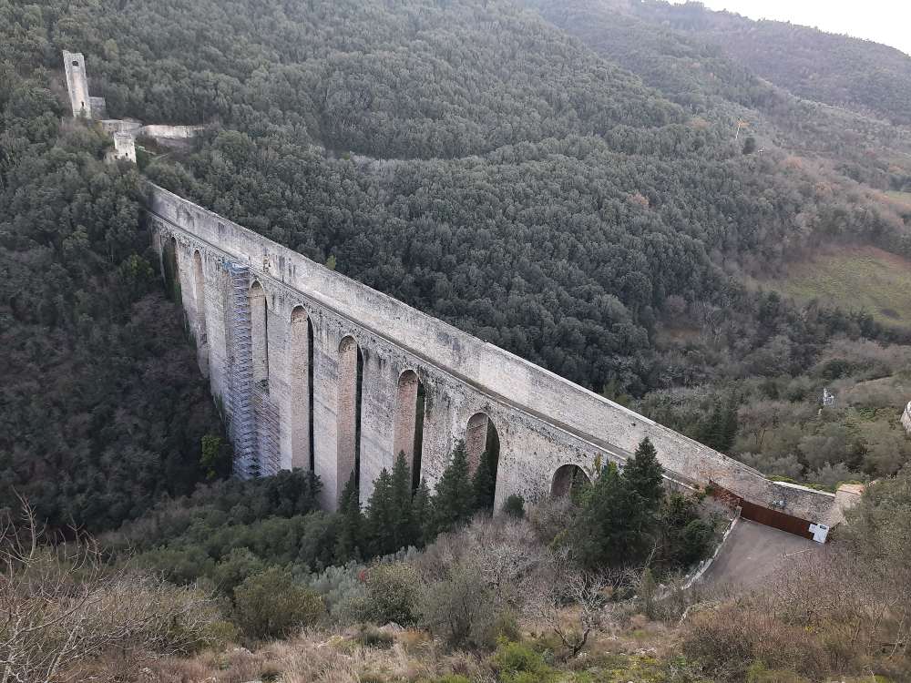 Moving slightly away from the center we arrive at perhaps the most evocative place on our itinerary: the Ponte delle Torri. Although access is limited today, the view remains breathtaking. It is here that Don Matteo’s bicycle crossed one of the most iconic panoramas of the series, with the Rocca Albornoziana in the background. In the fiction, the Fortress resumes its ancient function as a prison. In reality, it dominates Spoleto from above and tells centuries of history, between power, control and cultural rebirth.