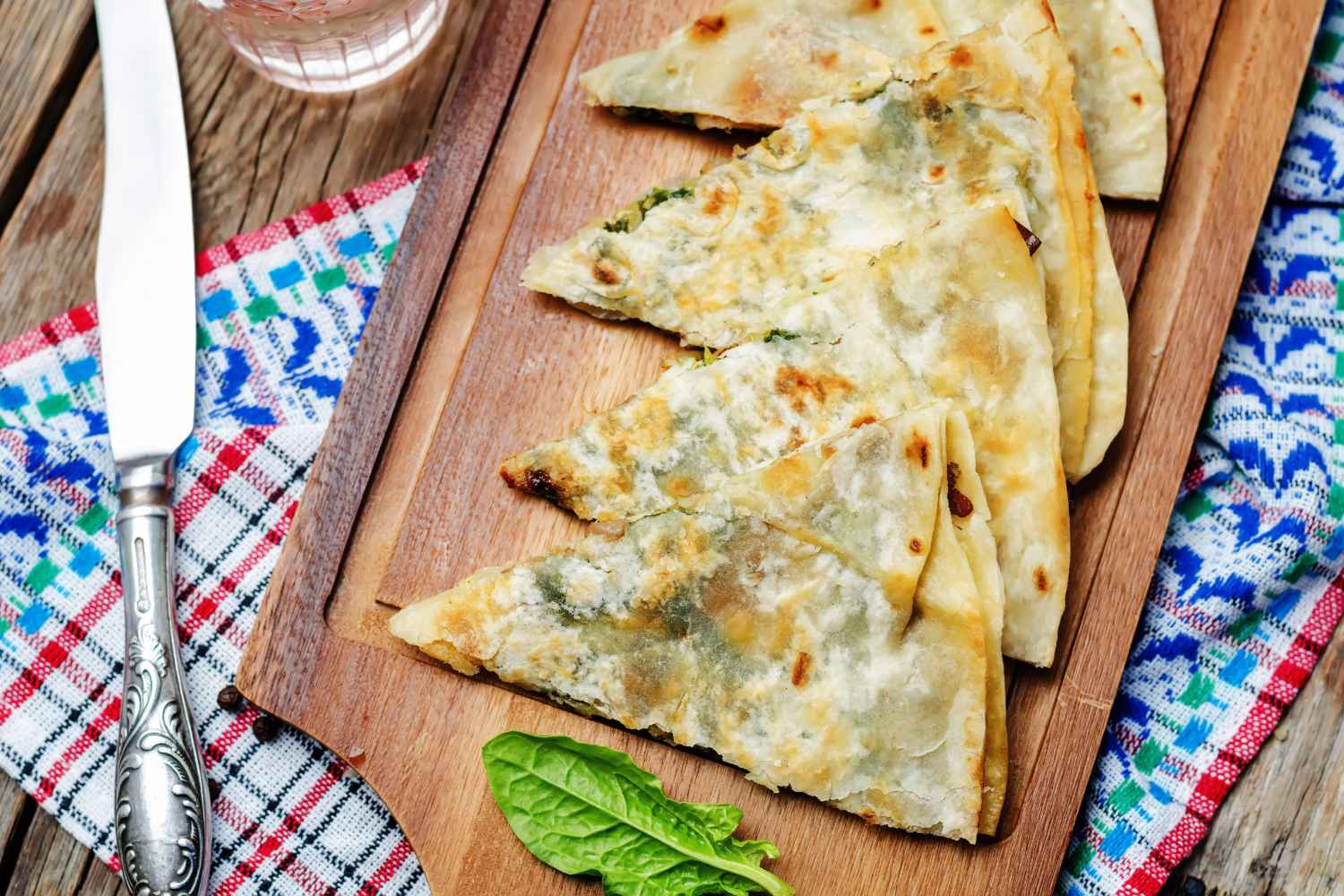 Take a tortilla (even fullness is fine), fill it with a handful of spinach already cooked or raw (if tender), and the sliced or grated cheese that row: like scamorza, provola or even well dry mozzarella. Close in the crescent, put in a non -stick pan without oil, cook a few minutes per side until it becomes golden and crunchy. Cuts in wedges and go. Perfect hot, but also good cold.
